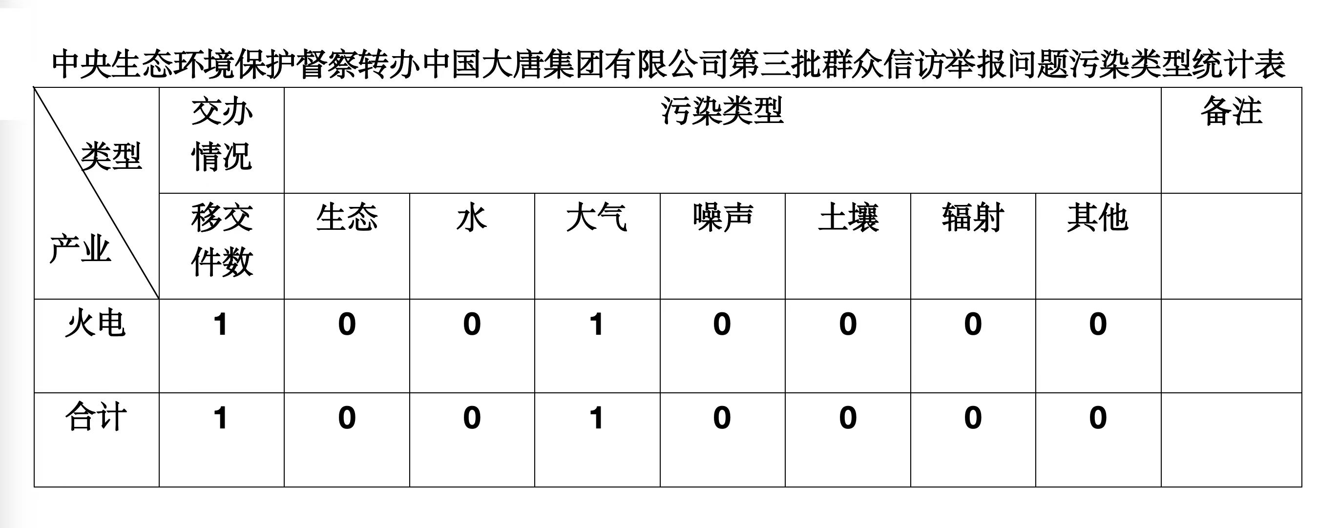 2025年6月5日,中央第七生態(tài)環(huán)境保護(hù)督察組向中國大唐集團(tuán)有限公司移交第三批群眾信訪舉報(bào)件,共計(jì)1件,為來電舉報(bào),涉及大氣問題1個(gè)。所有舉報(bào)件辦理工作已第一時(shí)間進(jìn)入調(diào)查核實(shí)辦理程序,辦理情況將按照相關(guān)要求反饋督察組,并及時(shí)向社會(huì)公開。