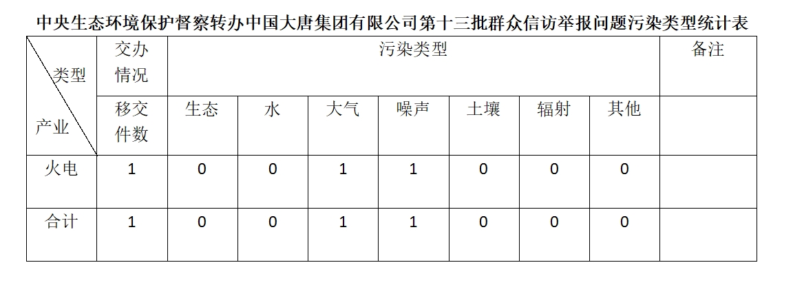 2025年6月19日,中央第七生態(tài)環(huán)境保護(hù)督察組向中國大唐集團(tuán)有限公司移交第十三批群眾信訪舉報(bào)件,共計(jì)1件,為來電舉報(bào),涉及大氣問題1個(gè)、噪聲問題1個(gè)。所有舉報(bào)件辦理工作已第一時(shí)間進(jìn)入調(diào)查核實(shí)辦理程序,辦理情況將按照相關(guān)要求反饋督察組,并及時(shí)向社會(huì)公開。
