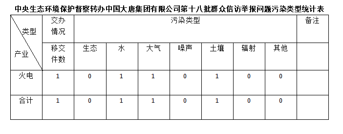中央第七生態(tài)環(huán)境保護督察組向中國大唐集團有限公司轉(zhuǎn)辦第十八批群眾信訪舉報件